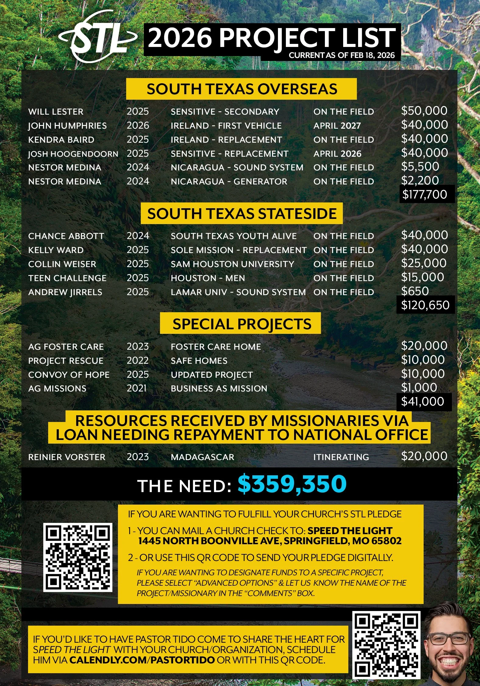 Simply put, we give so our missionaries can travel faster, preach clearer, and be heard louder in order for all to know Jesus. We have many Missionaries out on the field in need of our help. Above is a list of our South Texas Missionaries. Take a look and see if you, your church, or organization would like to sponsor or donate to help those in need.